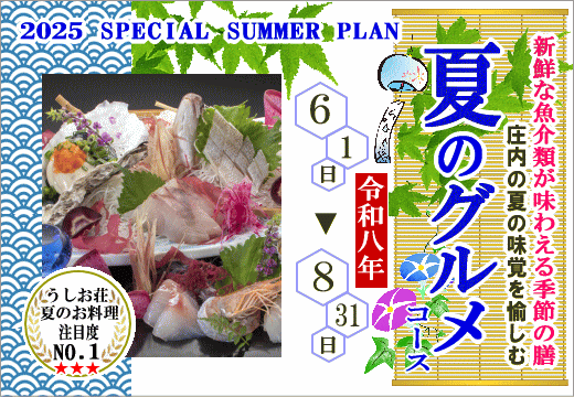 6月・7月・8月のグルメコースは、新鮮な魚介類が存分に味わえる…